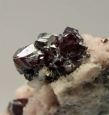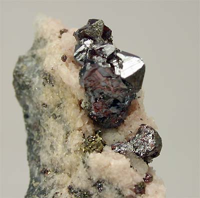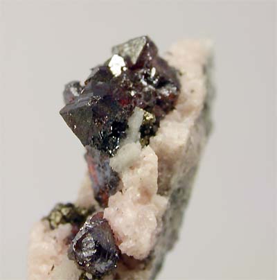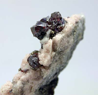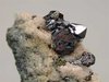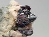 UCHUCHACUA MINE, LIMA DEPT., PERU - A bright cluster of deep red proustite crystals show up on the top of this specimen. The crystals are terminated and up to 2 mm. The cluster size is 0.6x0.3 cm. Overall size of this specimen is 3x1.5x1 cm.