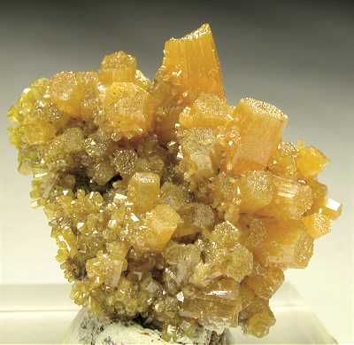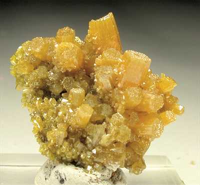 Bunker Hill Mine, Kellogg, Idaho, USA - Very nice display ! This specimen hosta a great amount of pyro crystals up to the size of 0.7 cm. The color is a bright mixture between yellow and orange. Overall size is 2.5x2x1.5 cm.
