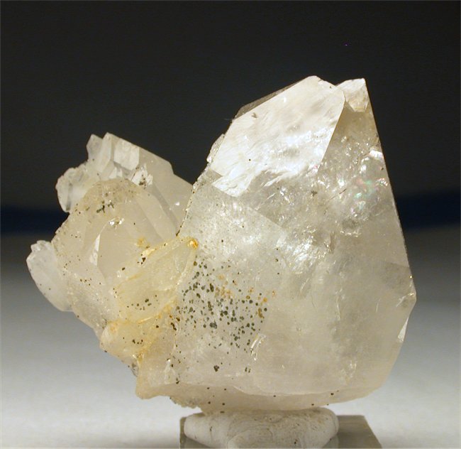 POLLONE MINE, LUCCA, ITALY - Very nice cluster of amber-in-color quartz crystals. The main crystal is 5x3.5x3 cm and is biterminated. Also the other quartzes are biterminated and up to 2.5 cm in size ! Overall size is 5x4.5x3 cm