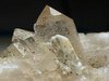 POLLONE MINE, LUCCA, ITALY - A classic from this famous Italian mine. The specimen is composed by crystalline quartx matrix with a well exposed terminated lightly smoky quartz crystal up to 2.7 cm in size. There are some other smaller quartzes with some sulfides coating on some faces. There is also a well defined and terminated white baryte crystal of 1.5 cm in size. Overall size is 6.5x5x4 cm. Weight is 95 gr.
