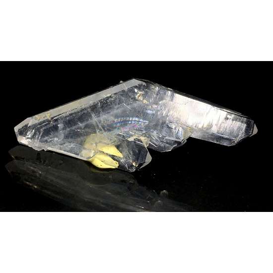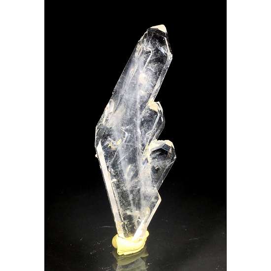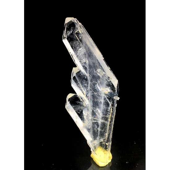 Toi, Wanna, South Wazikistan, Pakistan - Very clear double terminated and transparent faden quartz crystal. There are 3 well shaped and terminated quartz crystals in parallel crystallization. The longest of them is 3.2 cm in size. Very attractive formation. Specimen beautiful from all sides,no damage. Overall size is 6.4 × 2.3 × 0.7 cm