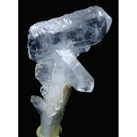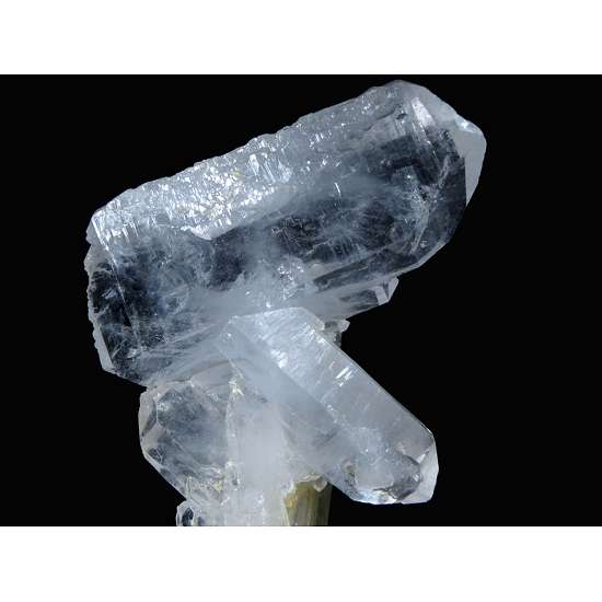 Toi, Wanna, South Wazikistan, Pakistan - Very clear terminated and transparent faden quartz crystals compose this cluster. The main crystal is 4x1.6 cm in size and it is doubly terminated ! no damage ! There are 3 other well shaped and terminated quartz crystals in parallel crystallization on a 5 cm long quartz crystal ! showy specimen of 7x4x1.3 cm in size.