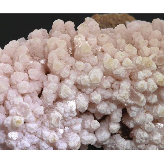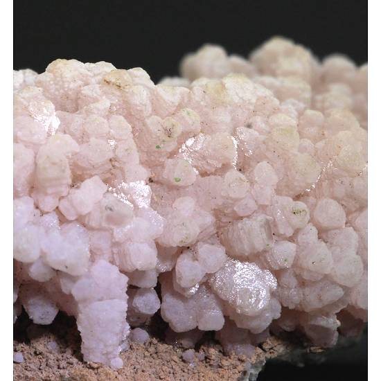 N'Chwaning Mine, Northern Cape Province, South Africa - Nice coverage of crystalline rhodocrosite from this well known locality ! The crystals show a nice light pink color and are up to 0.4 cm Nice color and showy ! Overall size is 4x2x1.5 cm