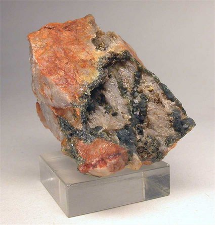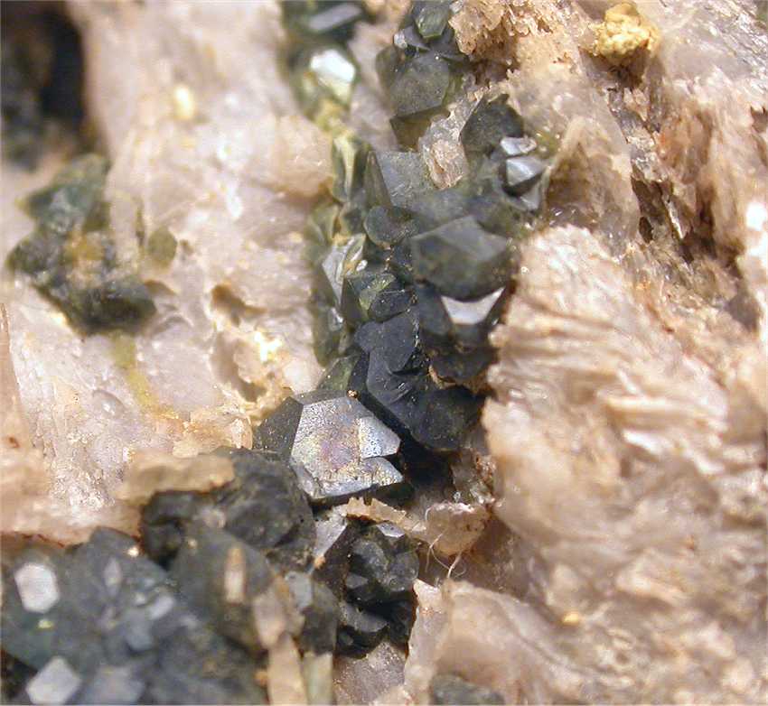 Hemerdon Bal Open Working, Plympton, Devon, United Kingdom - Very nice light blue scorodite crystals show up in this open cavity. The size is up to 0.3 cm. Wel defined and groupped forming clusters ! Overall size is 5.5x3.8x3.2 cm