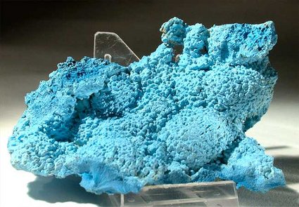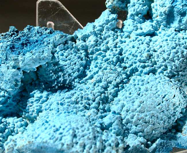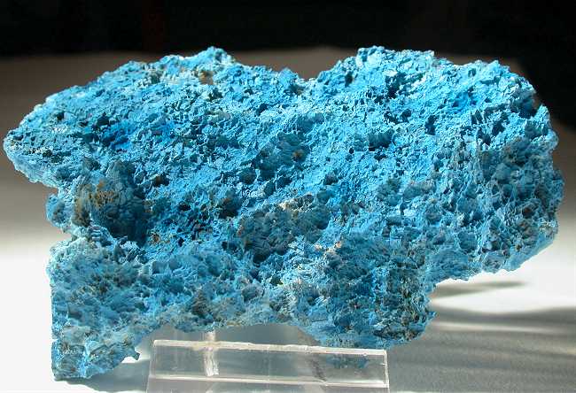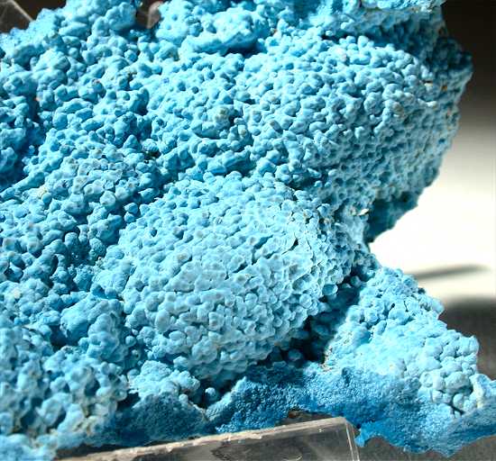 Tantara mine, Katanga Prov., Dem. Rep. of the Congo, Africa - Super large and showy Shattuckite specimen ! The rock is 9.2x6x2.5 cm in size and shows a lot of spheroids with the classic azure/blue color ! The radial crystallization of the mineral can be seen all along the edges. A super specimen !