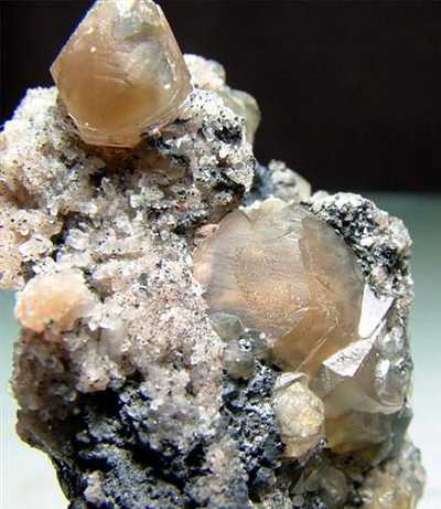 Tsumeb Mine, Otavi Highlands, Namibia - A depcrepit galena matrix with surface coating of small smithsonite crystals also has groups, isolated crystals of the same in a pinkish brown colour up to the size of 0.8-0.9 cm ! Nice specimen of 4.3x3.1x2.7 cm in size