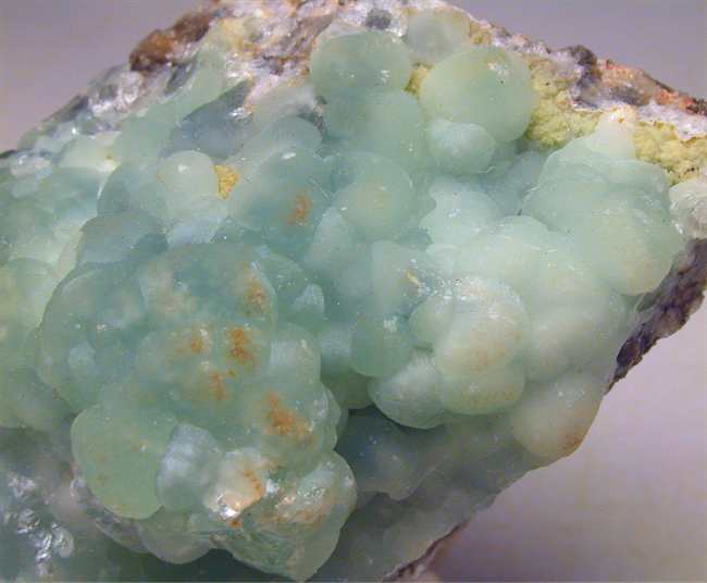 San Antonio Mine, Santa Eulalia District, Chihuahua, Mexico - Coating of globular smithsonite crystals ! Nice ligh blue color ! On the back of the rock a lot of 1-3 mm hemimorphites ! Overall size is 4x3x2 cm