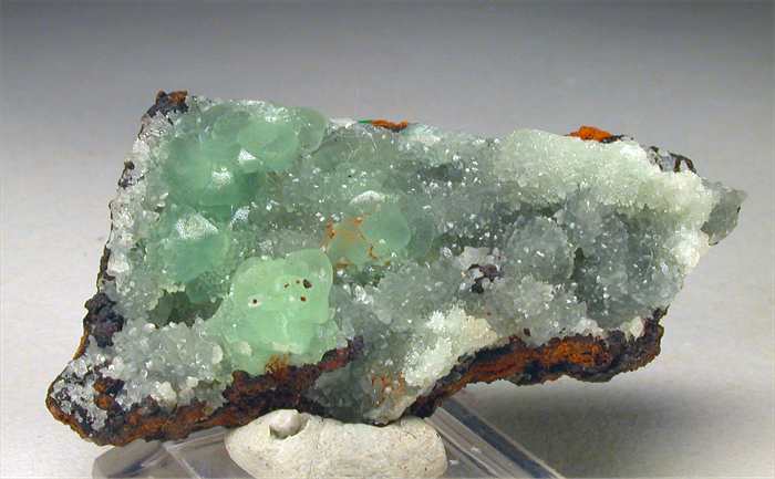 San Antonio Mine, Santa Eulalia District, Chihuahua, Mexico - Nice coating of smithsonite crystals up to 0.5 cm in size ! Bright light blue color ! Overall size is 4.5x2.5x1 cm