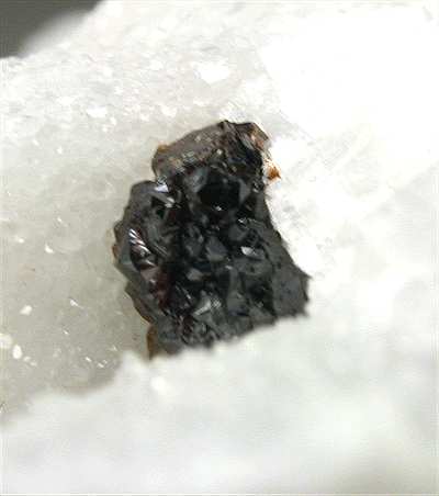 Colonnata quarry, Apuane Alps, Carrara, Italy - This marble specimen hosts a cluster of terminated deep brown/red sphalerite crystals of 0.4 cm nicely nested in an open cavity. The cluster shows nicely on the white marble. Overall size is 4x3.5x2 cm.