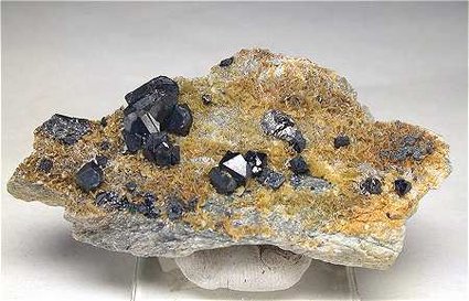 BOTTINO MINE, SERAVEZZA, CARRARA, ITALY - Very nice specimen with several sphalerite and galena crystals. All of them show up on tiny siderite crystals. This specimen has been collecte inside the mine, since no valuable specimne can be found in the dumps. The crystals are up to 0.6 cm in size. Real nice rock of 6.5x3x1.8 cm