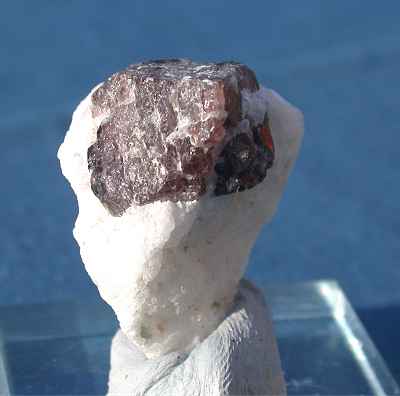 PAKISTAN - Large spinel, 1 cm in size, typically shaped as composed by several crystals, shows up on this specimen of 2.5X1.5X2 cm.