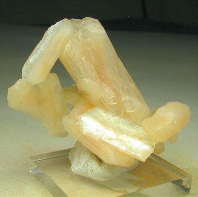 Pune, Maharashtra, India - Nice cluster of pink stilbite. The stilbite crystals are up to 3.2 cm in size ! The color is a nice pink. The ckluster has no contact point, it is floater. Overall size is 4.5x3.5x3 cm.