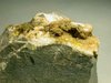PERTICARA MINE, PERTICARA, ITALY - An old specimen from a dismissed collection. This mine has been worked up to the early 60ies. Nowadays is closed forever due to toxic gas. The specimen has a lot of 0.4 cm sulfur crystals nicely located on a coating of terminated celestine crystals ! there are hundreds of 2-4 mm celestine crystals. Overall size is 8x4x7 cm.