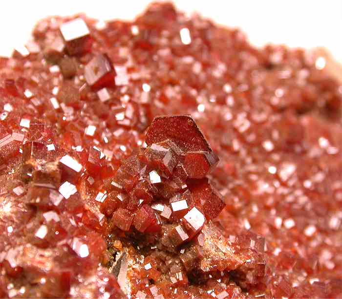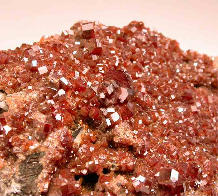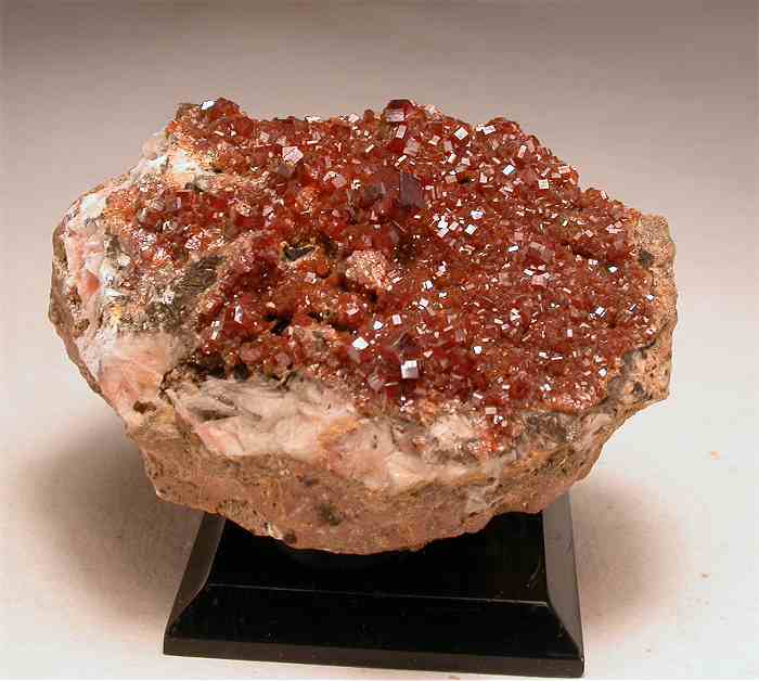 Mibladen, Midelt Province, DrĂ¢a-Tafilalet Region, Morocco - A bright deep red coverage of vanadinite crystals to the size of 0.5 cm in diameter ! Nice classic specimen from Morocco. Overall size is 6x4x3.2 cm.