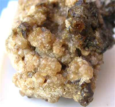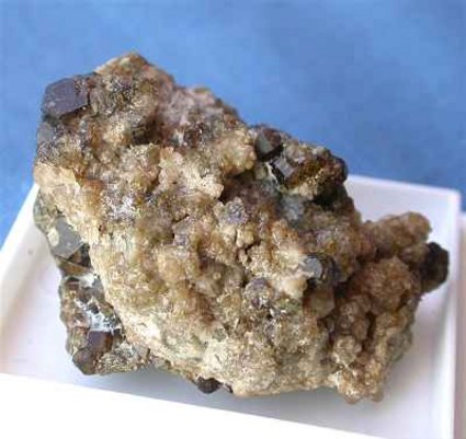 PITIGLIANO QUARRY, GROSSETO, ITALY - From an old locality, nowadays lost ! this specimen hosts a lot of grossularia crystals up to 2 mm and several vesuvianite crystals up to 0.4 cm. Nice 3x2x2 cm specimen. Overall size is 3x2x2 cm