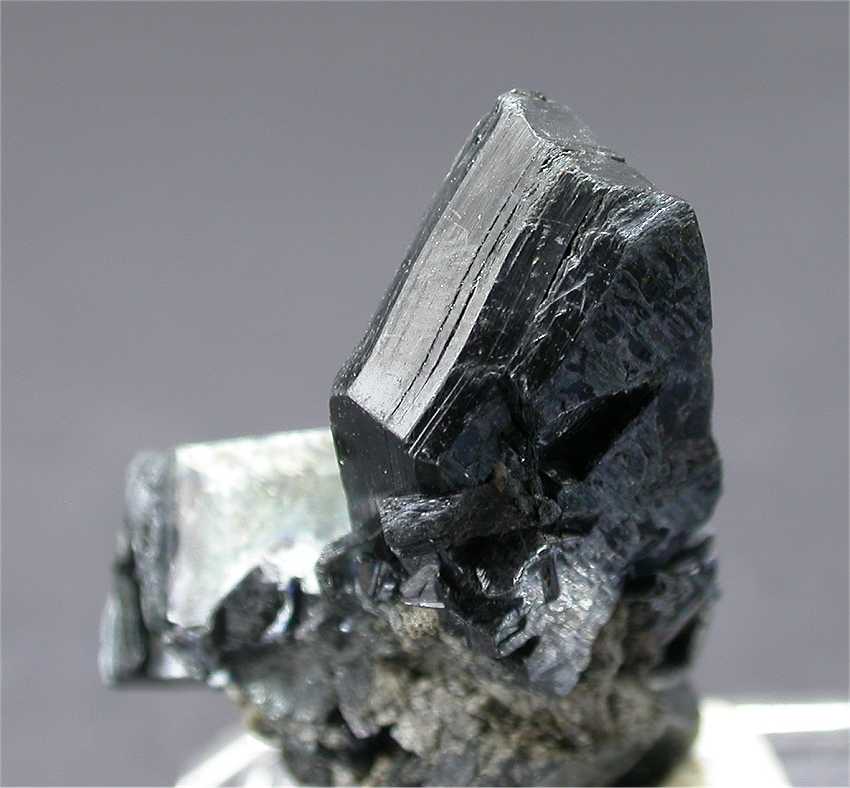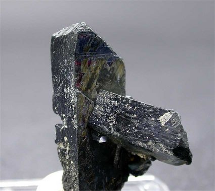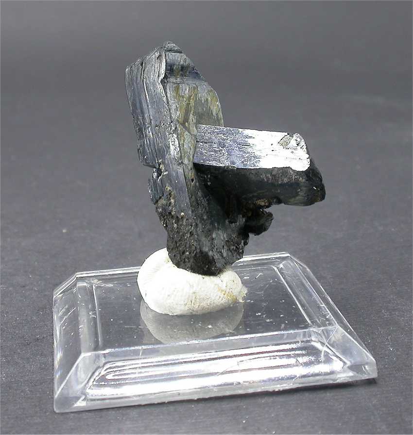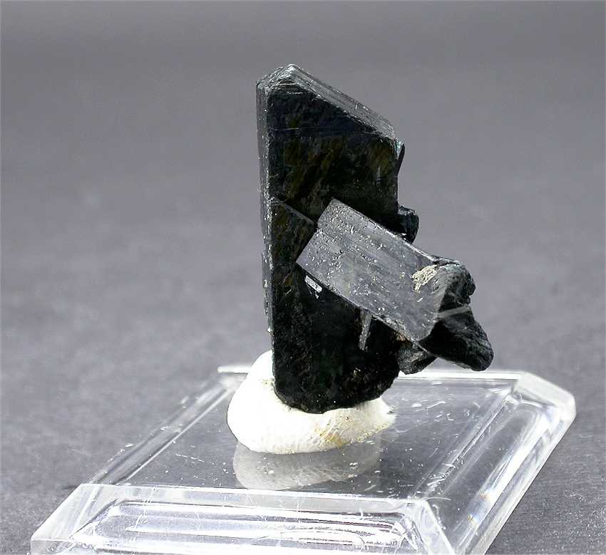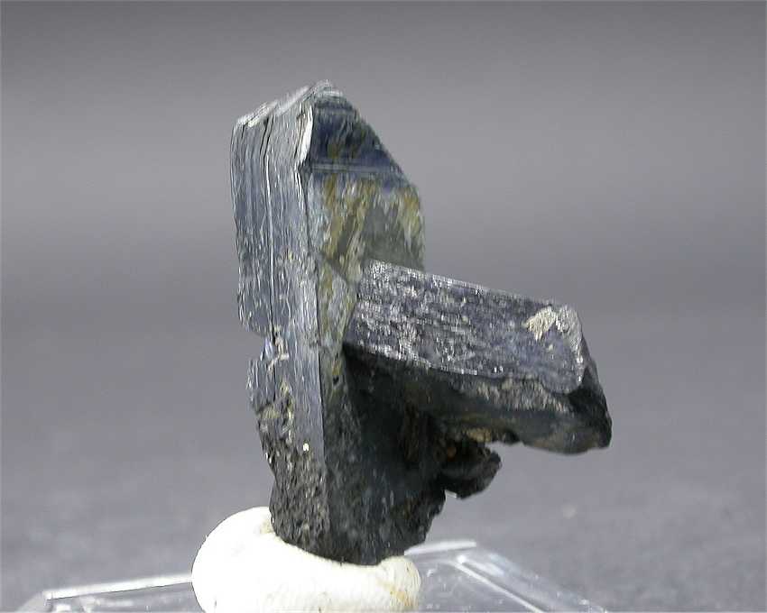 Bolivia - Nicely terminated vivianite crystal of 3x1.3 cm in size. The crystal shows a nice deep green/blue color and has a twin crystal on a side of 1.8 cm in size. Nice classic from bolivia. Overall size is 3.2x2x2 cm. Weight is 10 gr