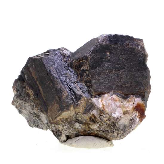 Horni Slavkov (Schlaggenwald), Bohemia, Czech Republic - A dense twin of wolframite from Bohemia with good lustre to some faces and heavily striations. The main crystal is 3.5 cm in size. Old label also ! Overall size is 4.5 × 5.3 × 2.6 cm