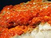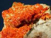 Chapacase Mine, nr. Maria Elena, CHILE - Bright coating of 1-2 wulfenite crystals. The color is bright red/orange and and the overall size is 4x4x4.5 cm.