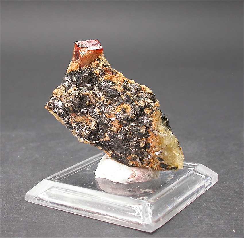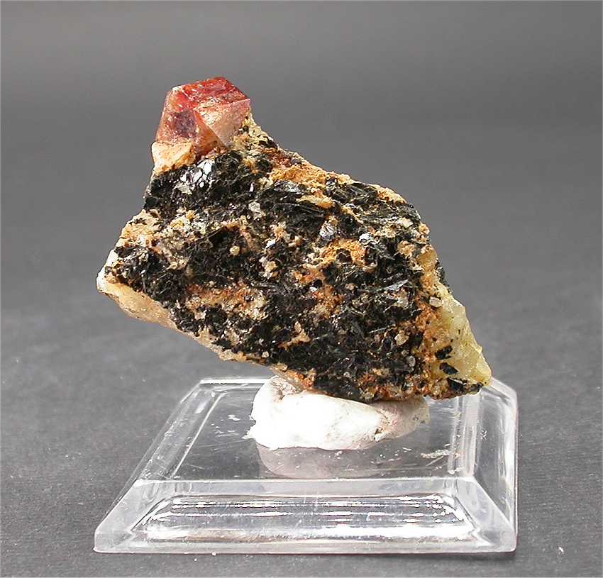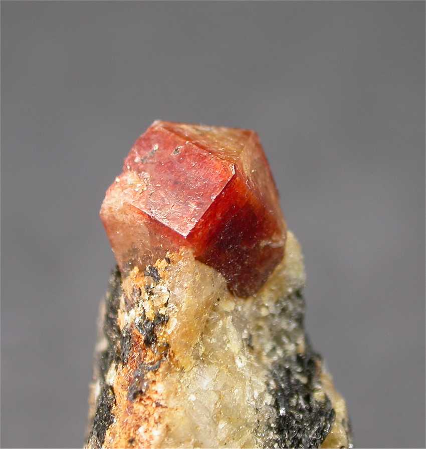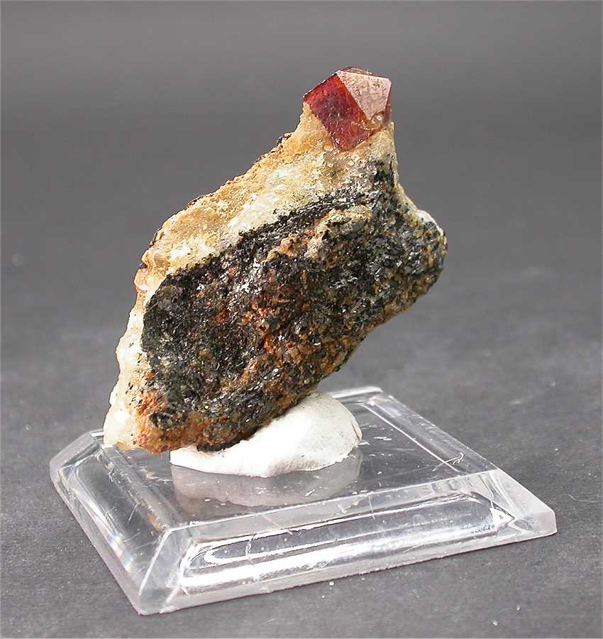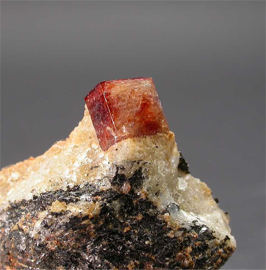 Harcho, Astore Valley, Gilgit-Baltistan, Pakistan - Bright red zircon crystals on matrix ! The zircon is perfectly terminated and 1 cm wide ! Bright red color with some transparency. Overall size is 4.2x2.6x1.5 cm. Weight is 20 gr.