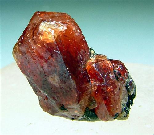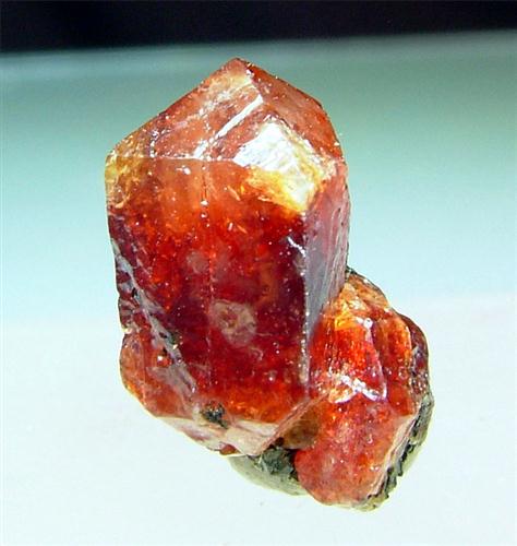 Chitral Valley, North West Frontier Province, Pakistan - A single elongate pyramidal zircon crystal in a translucent orange brown colour. Some residual biotite matrix around the base. Overall size is Size: 1.4x 0.7 x 0.6 cm