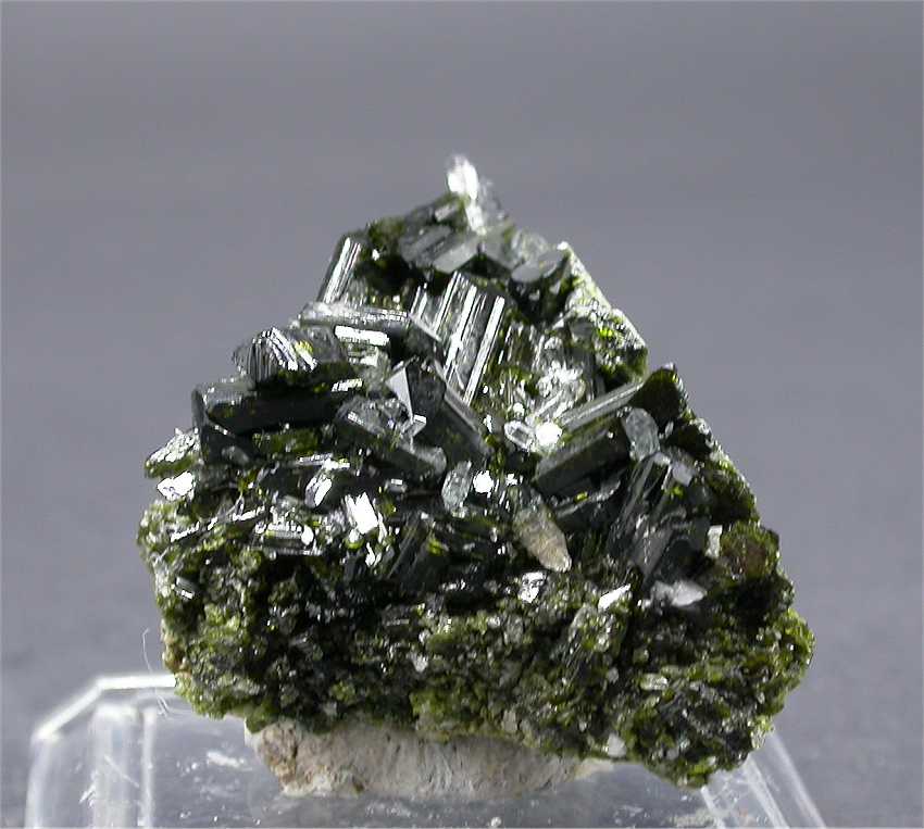 Green Monster Mountain, Prince of Wales Island, Alaska, USA - A nice coverage of deep bright green epidote crystals to the size of 0.8-1 cm show up on this rock. Lot of crystals ! Overall size is…
