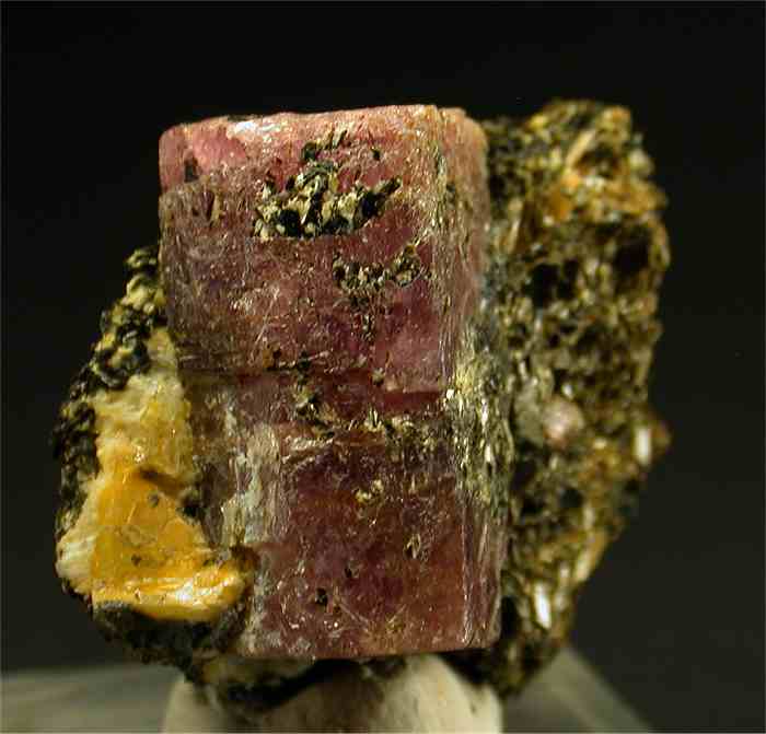 HOOSY, MADAGASCAR - A very nice biterminated corundom on scist matrix ! The crystal is 2.3 cm long and 1.6 cm wide ! Great red/violet color. Very esthetic ! Overall size is 3x2.7x1.8 cm