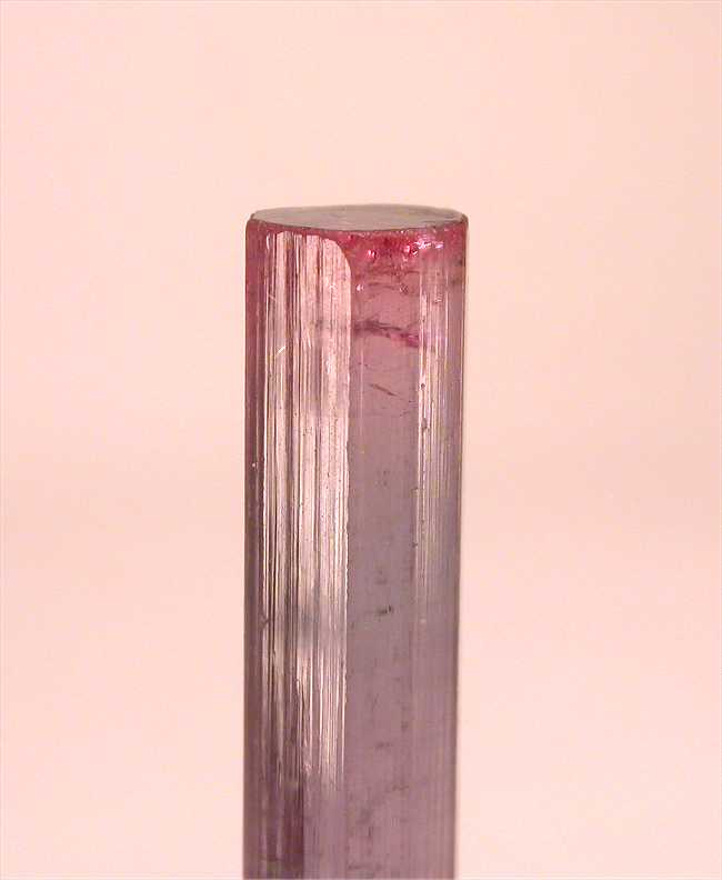 CRUZEIRO MINE, MINAS GERAIS, BRAZIL - Greatly terminated green elbaite of 2.5x0.3x0.3 cm in size. Great colors: pink-light green-green.