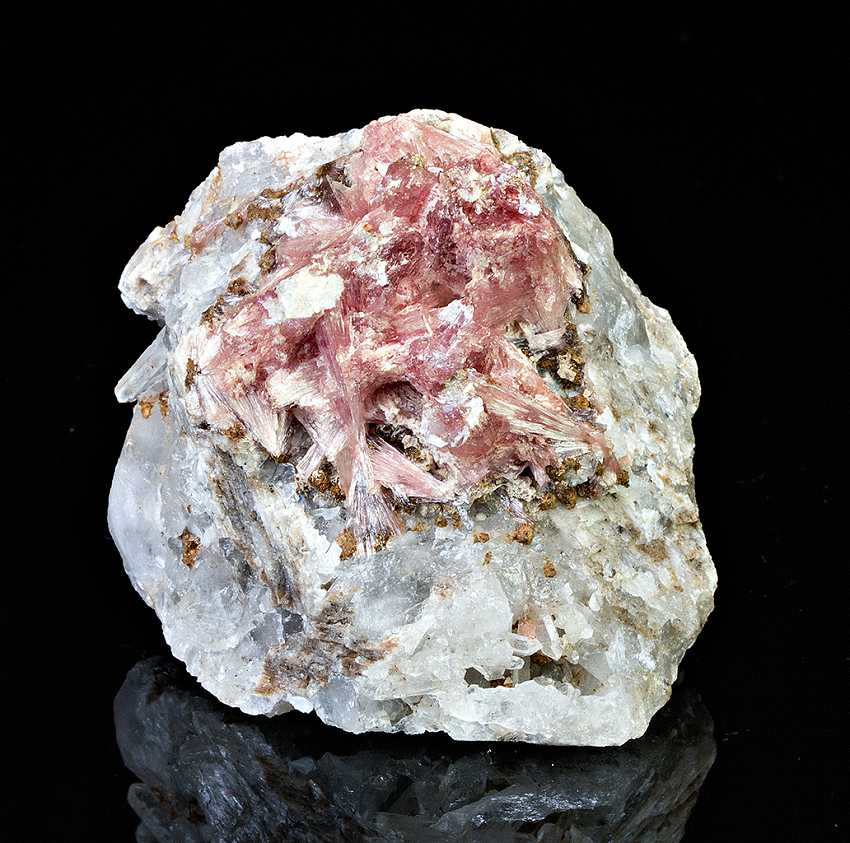 Fengjiashan Mine, Daye Co., Hubei Province, China - Attractive pink crystallized in a site covering an area approximately 3.0 x 3.0 cm in size nice on the front side of a 5.0 x 5.0 x 4.0 cm…