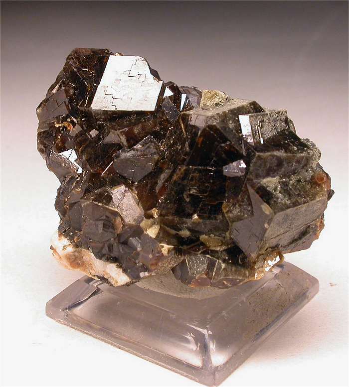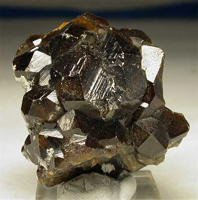 Chifeng, Inner Mongolia, China - Nice bright cluster of dark brown andradite crystals. The andradites are up to 1.5 cm in diameter. Overall size of the specimen is 3.5x3.5x3 cm