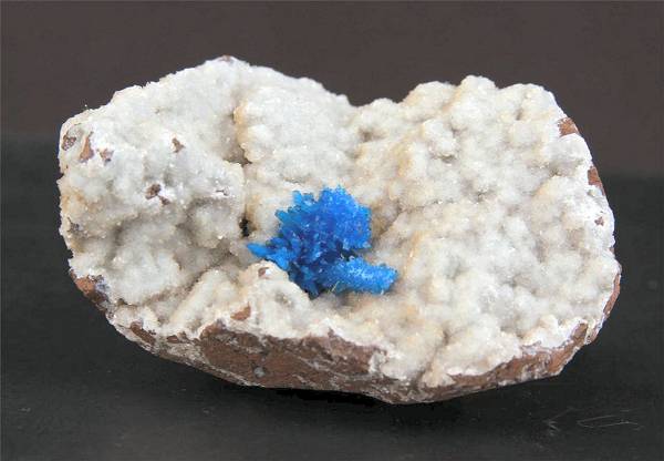 POONA, INDIA - Real nice cavansite specimen ! on a bed of crystalline stilbite there is a great cavansite "flower of crystals" ! the size is 1 cm. Overall size of the specimen is 4x4.5x2 cm.