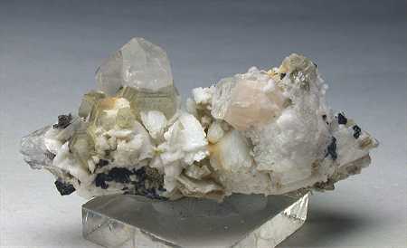 Alchuri Village, Shigar, Northern Areas, Pakistan - This rock hosts a terminated light pink apatite crystal of 0.7x0.5 cm in size located close to quartz and mica books ! Nice specimen of 5x2.5x2 cm