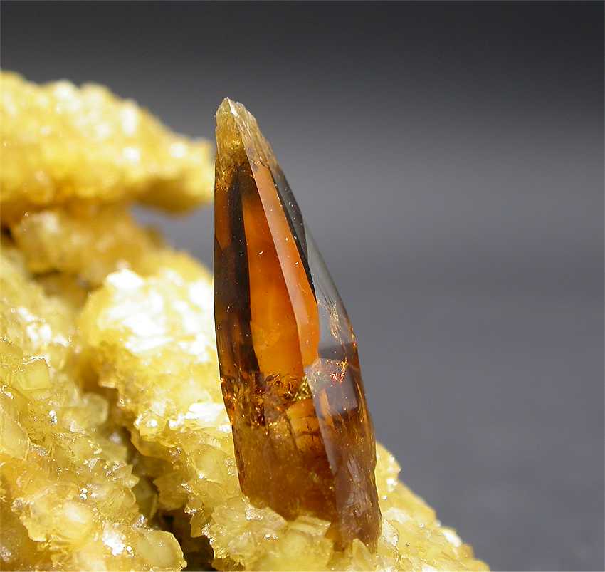 BUNKER HILL MINE, KELLOG, IDAHO, USA - Deep orange/yellow crystals of 0.3-0.4 cm that have a wonderful showing. The overall size is 0.4x1 cm.