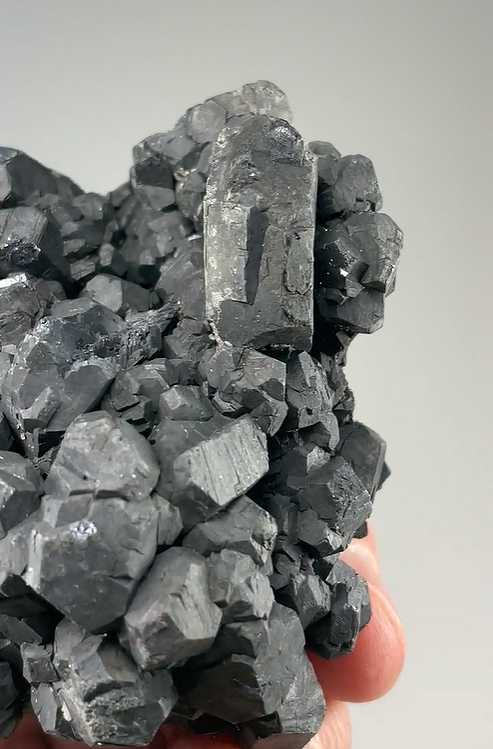 Sweetwater mine, Viburnum Trend, Reynolds Co., Missouri, USA - Non-lustrous thick penetration twinned crystals of galena measuring to 2.7 cm in size coming off this matrix covered by non-twinned cube…