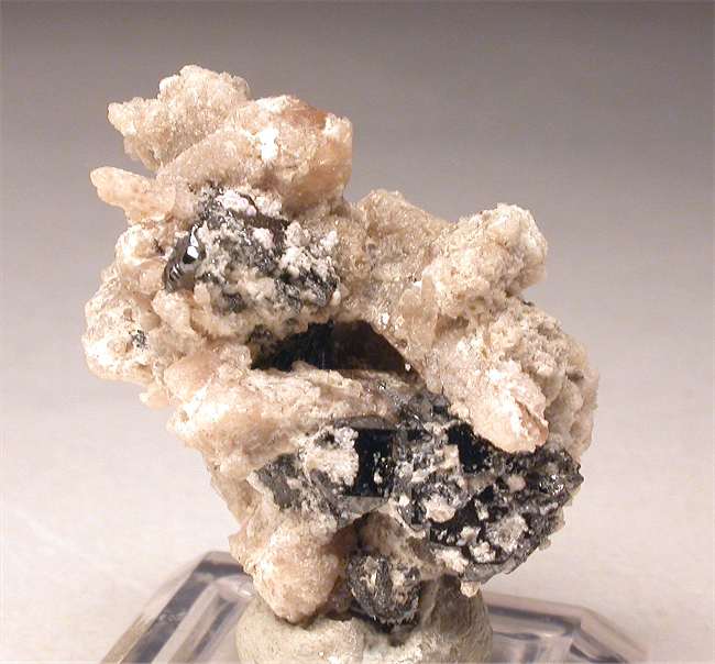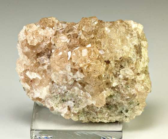 Jeffrey Mine, Asbestos, Quebec, Canada - Glistening gemmy pale pinkish crystals of grossular to 0.4 cm in size over the front of a 4.0 x 3.0 x 2.0 cm matrix. Not absolutely perfect, but still in very…