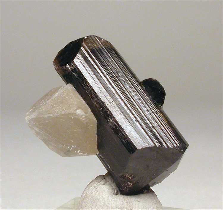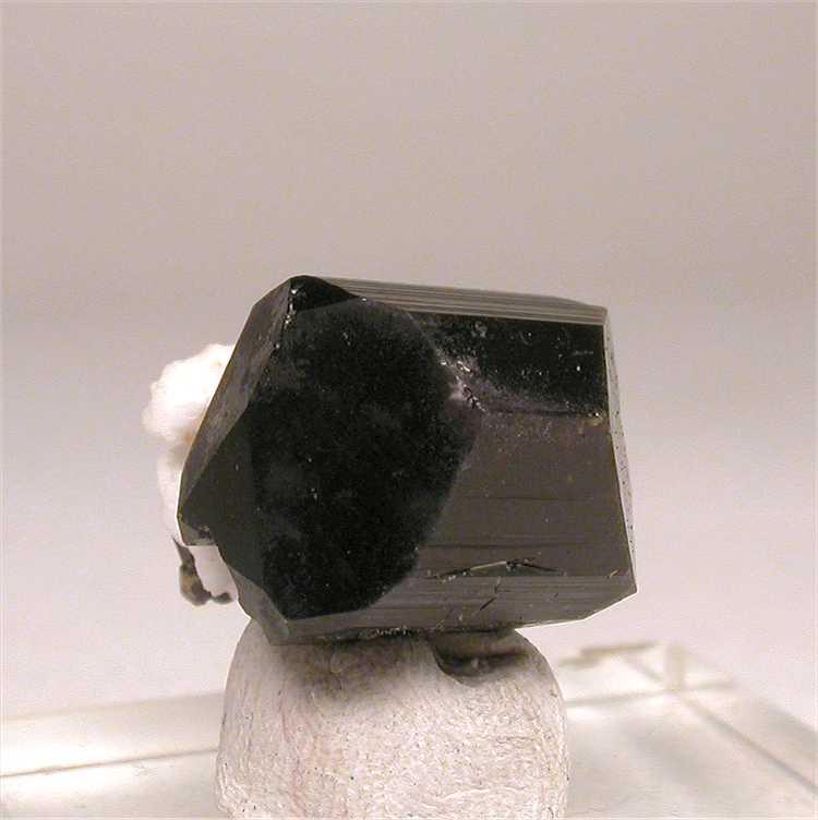 Ambararata, Madagascar - Biterminated liddicoatite of 1.5x1.2x1.2 cm in size. The crystal sits on a small feldspar matrix, vey white in color and this gives a great contrast for the dark brown color…