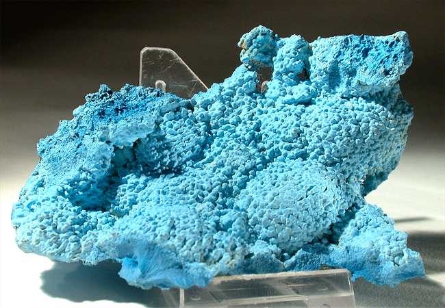 Tantara mine, Katanga Prov., Dem. Rep. of the Congo, Africa - Super large and showy Shattuckite specimen ! The rock is 9.2x6x2.5 cm in size and shows a lot of spheroids with the classic azure/blue…