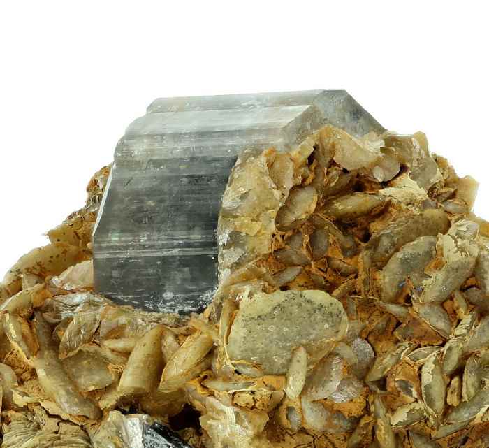Huanuni mine, Dalence Province, Potosi Department, Bolivia - Deep blue translucent thin prismatic crystal grouping of vivianite measuring 4.0 x 1.5 x 0.5 cm. Ex Chris & Agatha Galas collection.