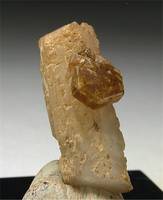 Zagi Mountain, Federally Administered Tribal Areas, Pakistan - Nice bright orange bastnaesite crystal of 0.7 cm wide. The crystal has no damage and shows nicely on a pericline crystal of 2.3 cm long.…
