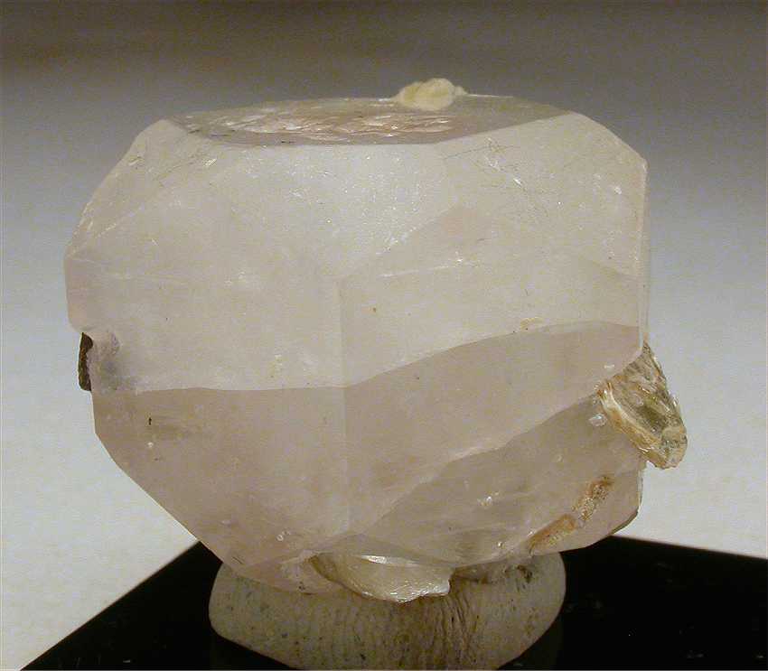 Niaslo, Basha Valley, Skardu Distr., Northern Areas, Pakistan - A nice light violet fluorapatite crystals sits on the top of a terminated well defined adularia crystal. The apatite is 0.7 cm wide and…