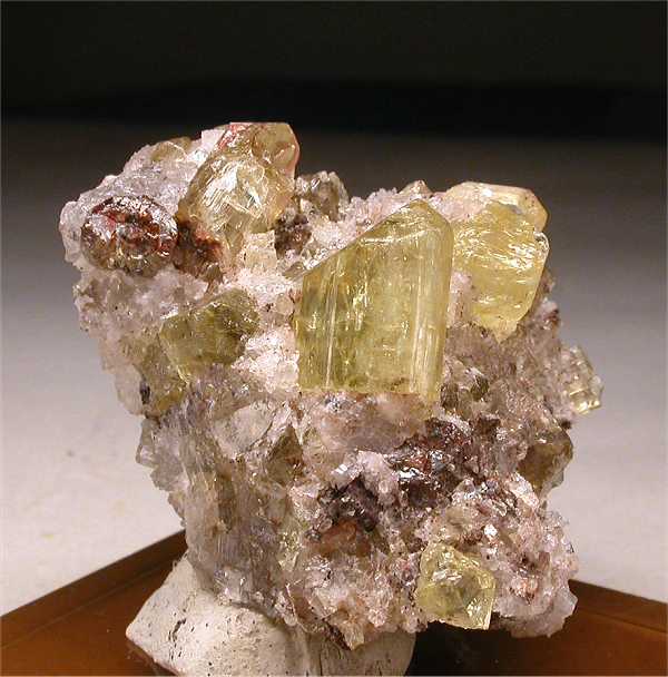 Tsumeb Mine, Otavi Highlands, Namibia - Very nice terminated large mimetite crystal of 0.8x0.4 cm stands on this specimen with other tiny mimetites. No damage. Very nice of 3x2.3x2.3 cm